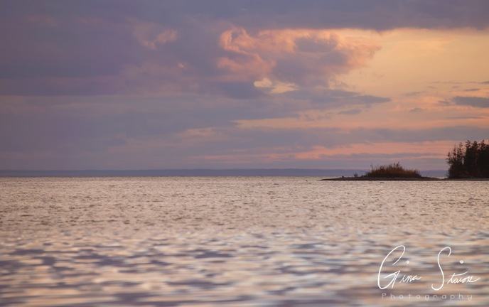 Birds stand along a melting lake during sunset in Toronto, Ontario, Canada.