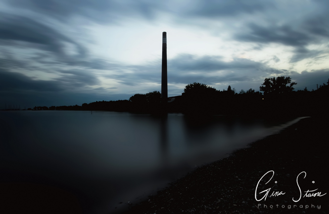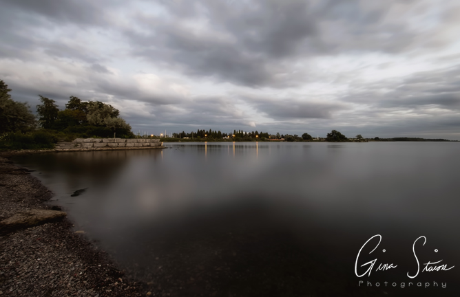 Long exposures of a moody skyscape and waterscape during a cloudy afternoon in Toronto, Ontario, Canada.