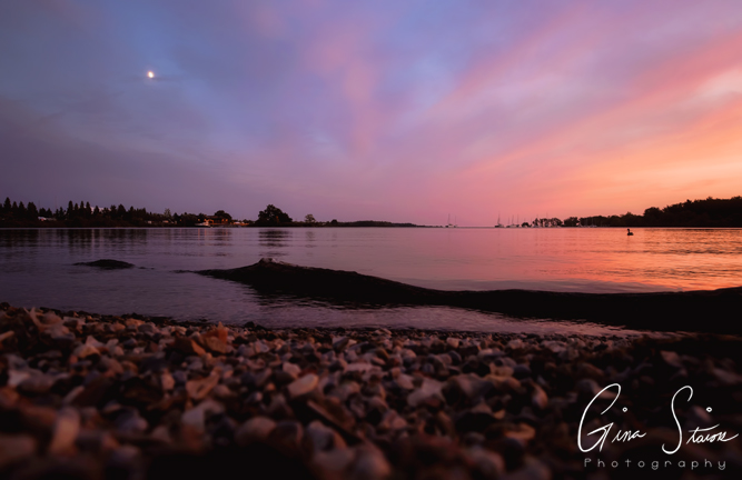 Scenes of a beautiful sunset by the lake on a oautumn evening in Toronto, Ontario, Canada.