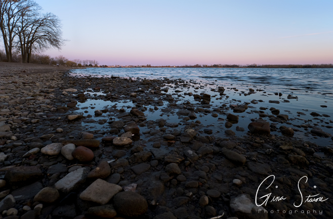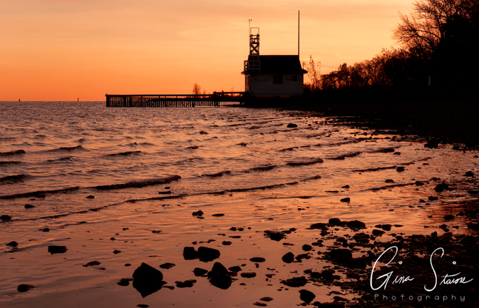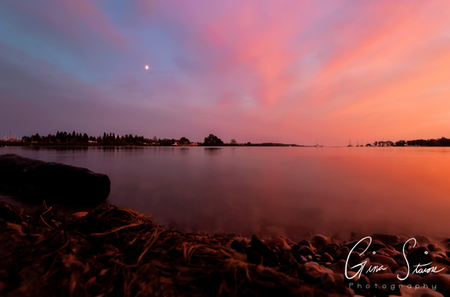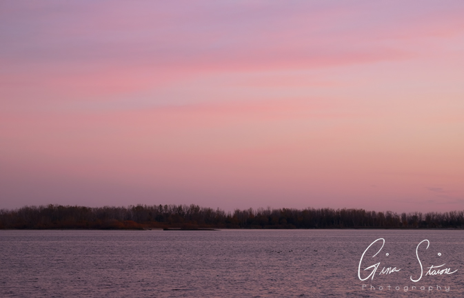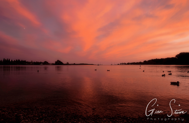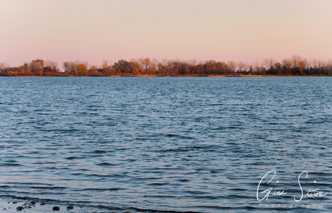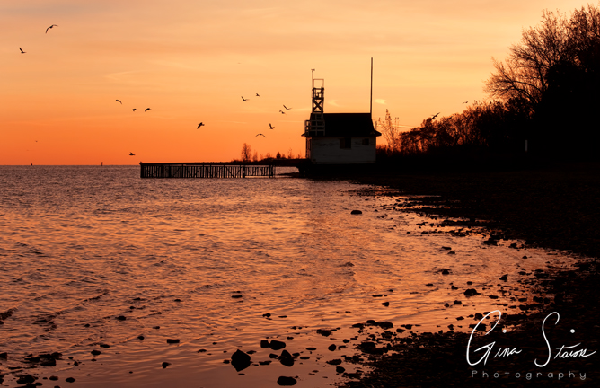 Scenes of a beautiful sunset by the lake on a oautumn evening in Toronto, Ontario, Canada.