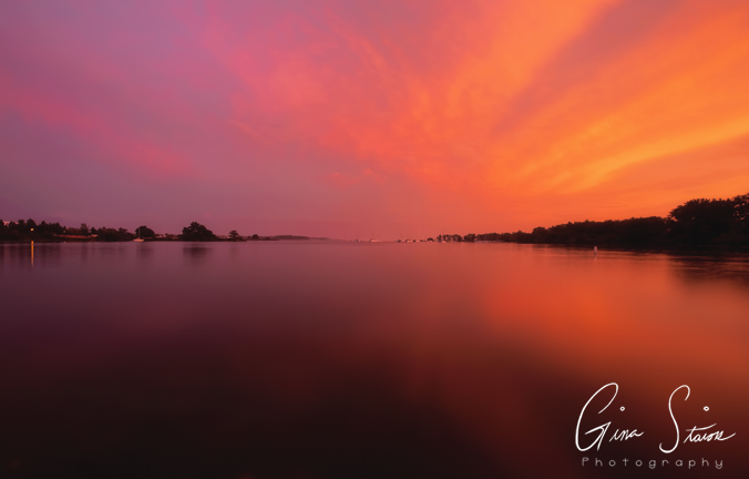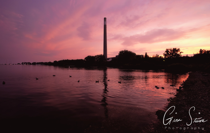 A pink sky acts as a beautiful backdrop for this female cardinal perched on an empty tree branch in Toronto, Ontario, Canada.