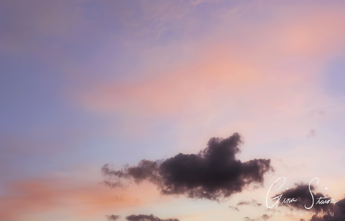 Fluffy clouds roll in as the sky turns beautiful shades of pink and purple during a summer sunset in Toronto, Ontario, Canada.