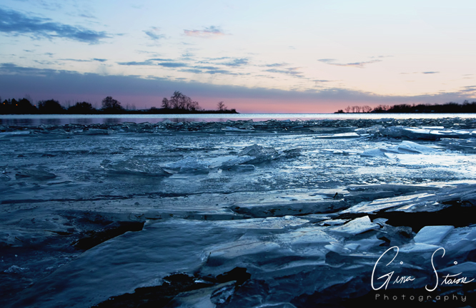 A trio of another few of my favourite images. This frozen landscape felt so quiet and serene that I almost felt like an intruder being there. I found a spot to sit and observe the beauty around me since these aren’t sights you can experience year round. In the back of my mind, I was hoping be treated to a sunset but I didn’t want to ask for too much, either. Truthfully, with the current cloud cover, I wasn’t expecting a memorable sunset at all. But since I was already there, I figured might as well wait. Even if I got some blue hour photos, I wouldn’t have been disappointed. You won’t see it in these images but in the next just how vibrant the sunset turned out to be. The glowing horizon only added to this landscape but honestly, with ice textures like this, any time of day would yield beautiful results.