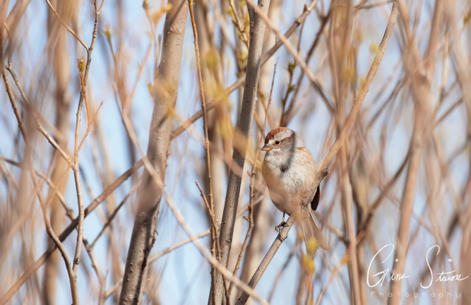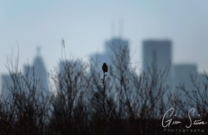 Canada geese, black-capped chickadees, an American tree sparrow, and a downy woodpecker on a peaceful winter afternoon in Toronto, Ontario, Canada.