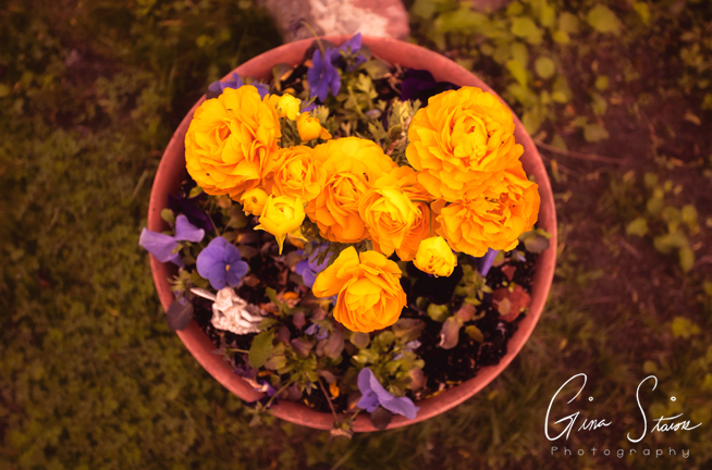 Various flowers bathed in golden hour sunlight during a warm spring evening in Toronto, Ontario, Canada.