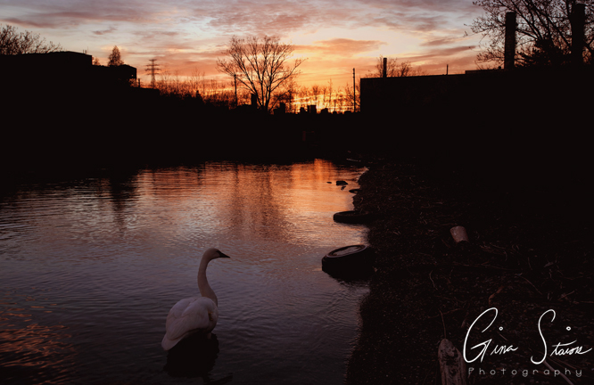 I thought this male mute swan being lit up by golden sunlight while out for a swim was just lovely. His reflection in the water really added to the scene.