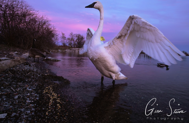 These are some of my favourite photos of my favourite trumpeter swan, Pet. She kept preening and spreading her wings and the lighting conditions were perfect. The sun shone beautifully through her wings and transformed her into some type of ethereal being.