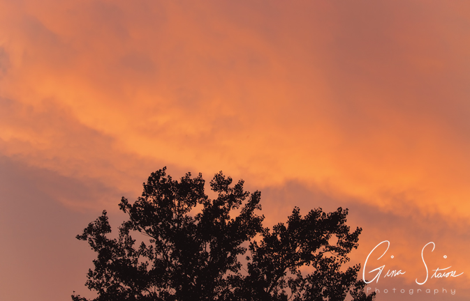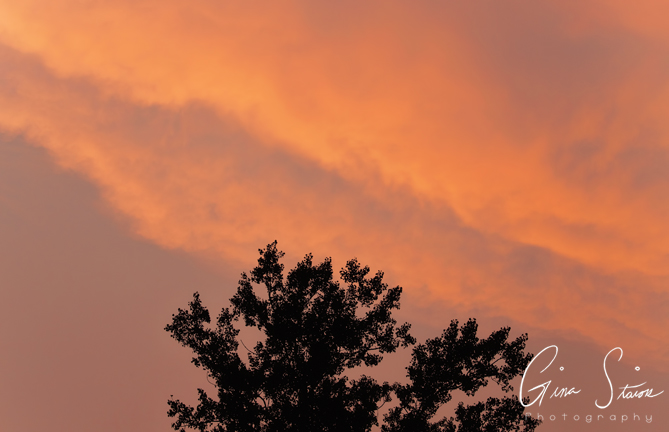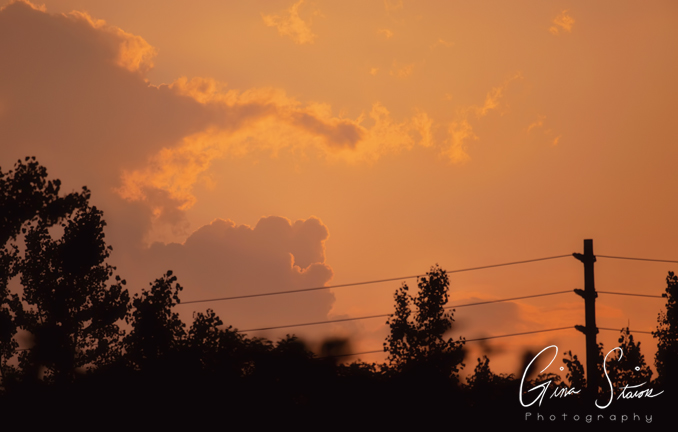 Fluffy clouds during a yellow and orange sunset on a summer evening in Toronto, Ontario, Canada. Can you spot the bird in the last photo?