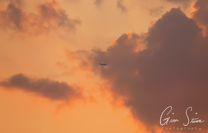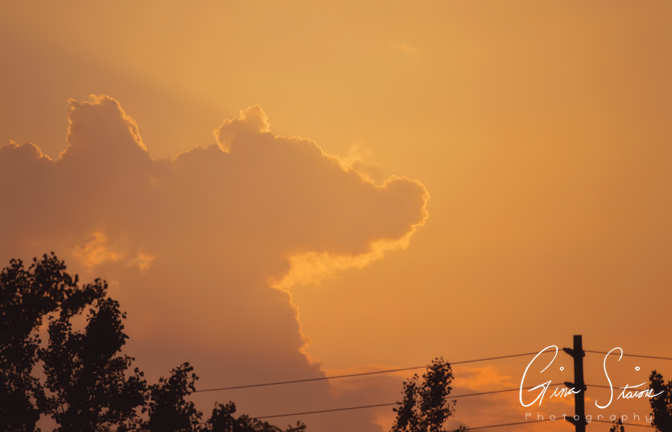 Fluffy clouds during a yellow and orange sunset on a summer evening in Toronto, Ontario, Canada. Can you spot the bird in the last photo?